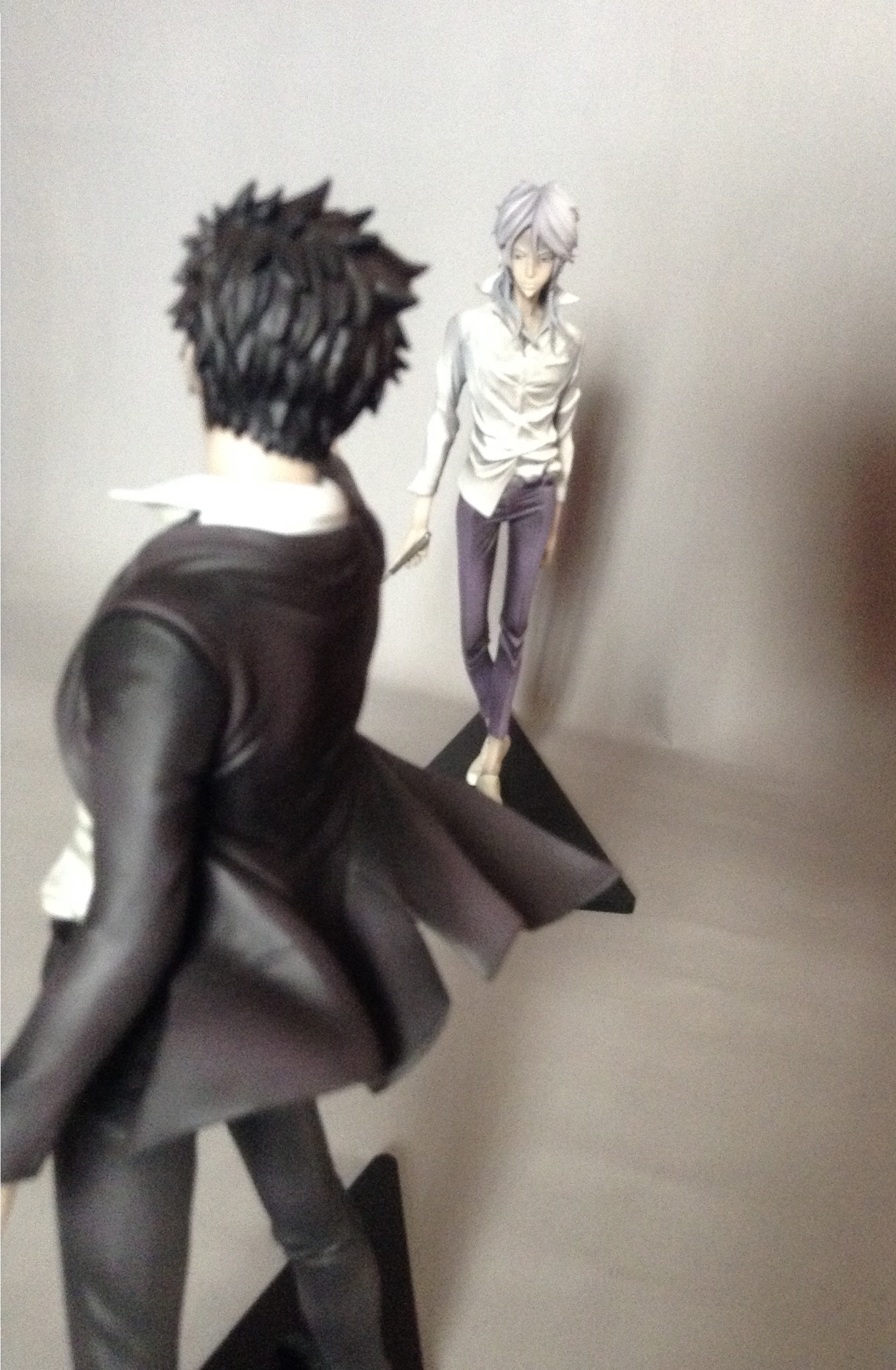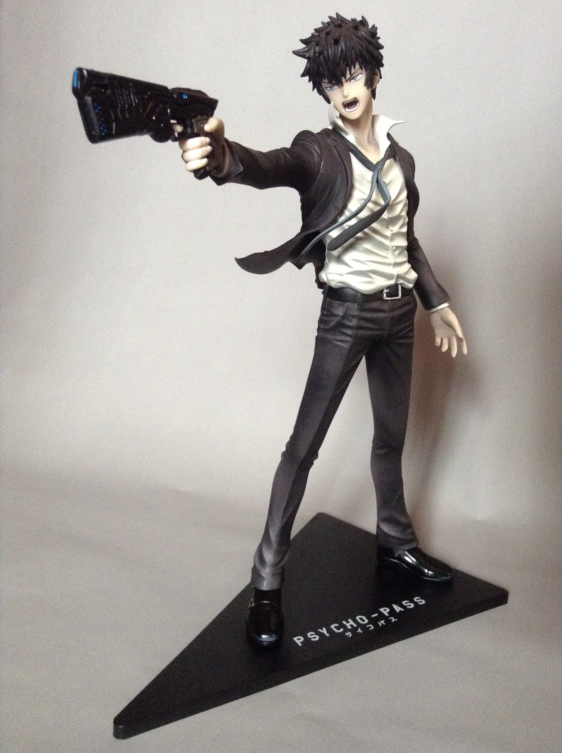La que está en el área gris, casi literalmente. El balance de puntos buenos y malos está parejo. La pose tiene cierto dinamismo gracias a la expresión y el vuelo que tiene la ropa, aunque técnicamente Kougami está parado. Como si hubiera estado corriendo y se parara en seco al ver a Makishima. En cuanto a la expresión, me gusta lo suficiente, y digo lo suficiente porque hubiera sido perfecta de no ser porque no está muy bien lograda. Otro punto que juega en su contra, al menos en mi opinión, es que está estilizada más de lo debido. De lejos no se nota, pero creo que el Kougami que recuerdo tiene al menos 5 kg. más de músculo. A decir verdad, la figura me recuerda un poco a XXXHolic, con lo alto y delgado que parece el personaje.